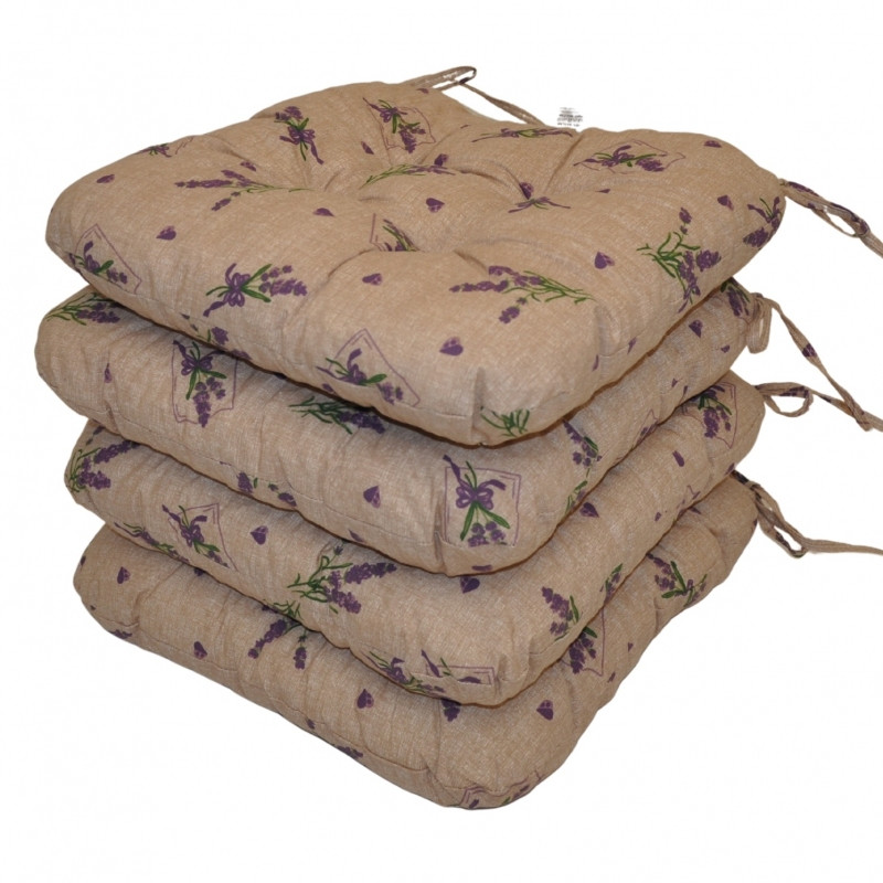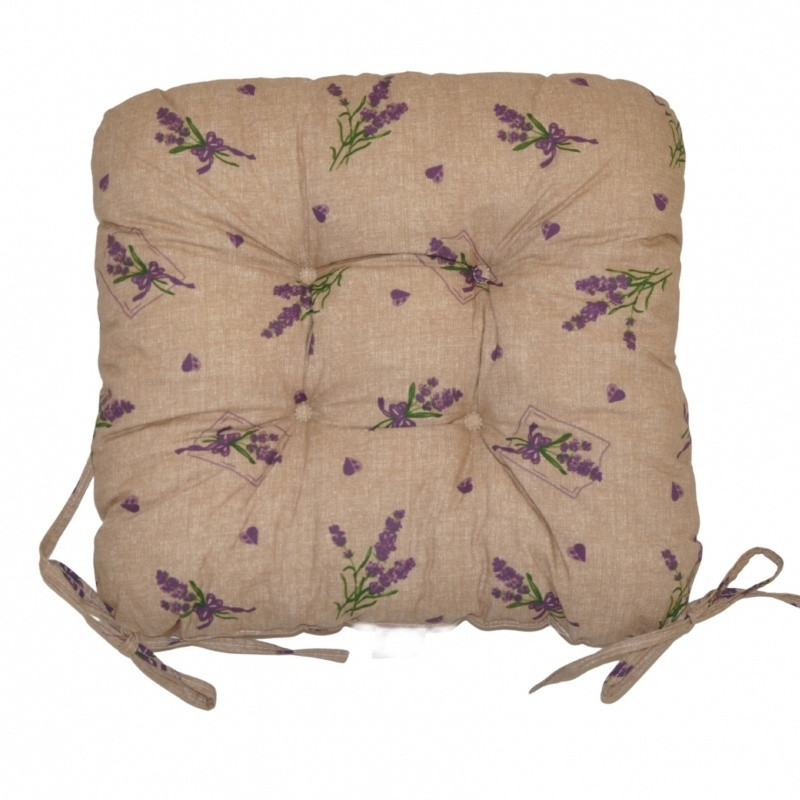 Sedák má čtvercový tvar se zaoblenými rohy a je opatřen praktickými šňůrkami k přichycení k židli.