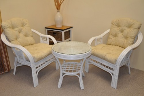 Set se skládá ze stolku, 2  křesel a polstrů.