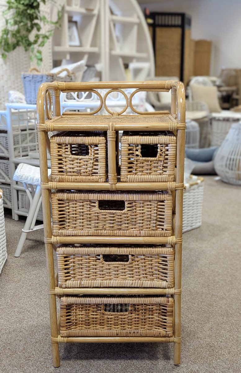 Ratanová komoda ( prádelník ) 3+2 zásuvky je vyrobena z přírodního ratanu.