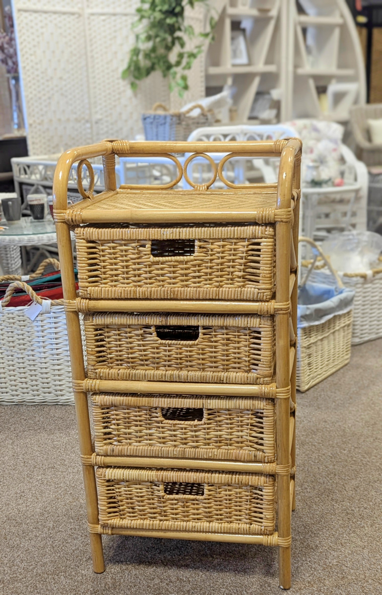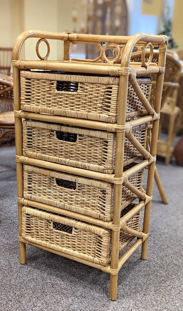 Ratanová komoda ( prádelník ) 4 zásuvky má konstrukci i zásuvky vyrobené z přírodního ratanu.