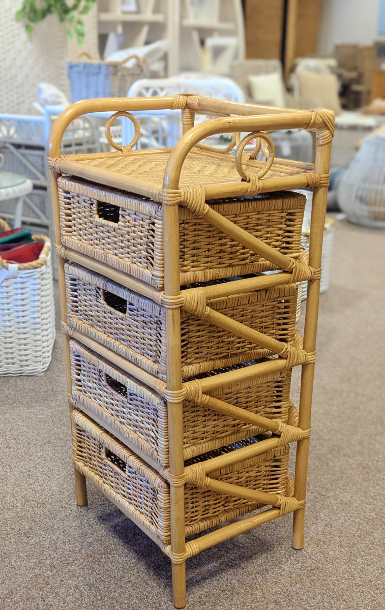 Ratanový PRÁDELNÍK 4 zásuvky medový