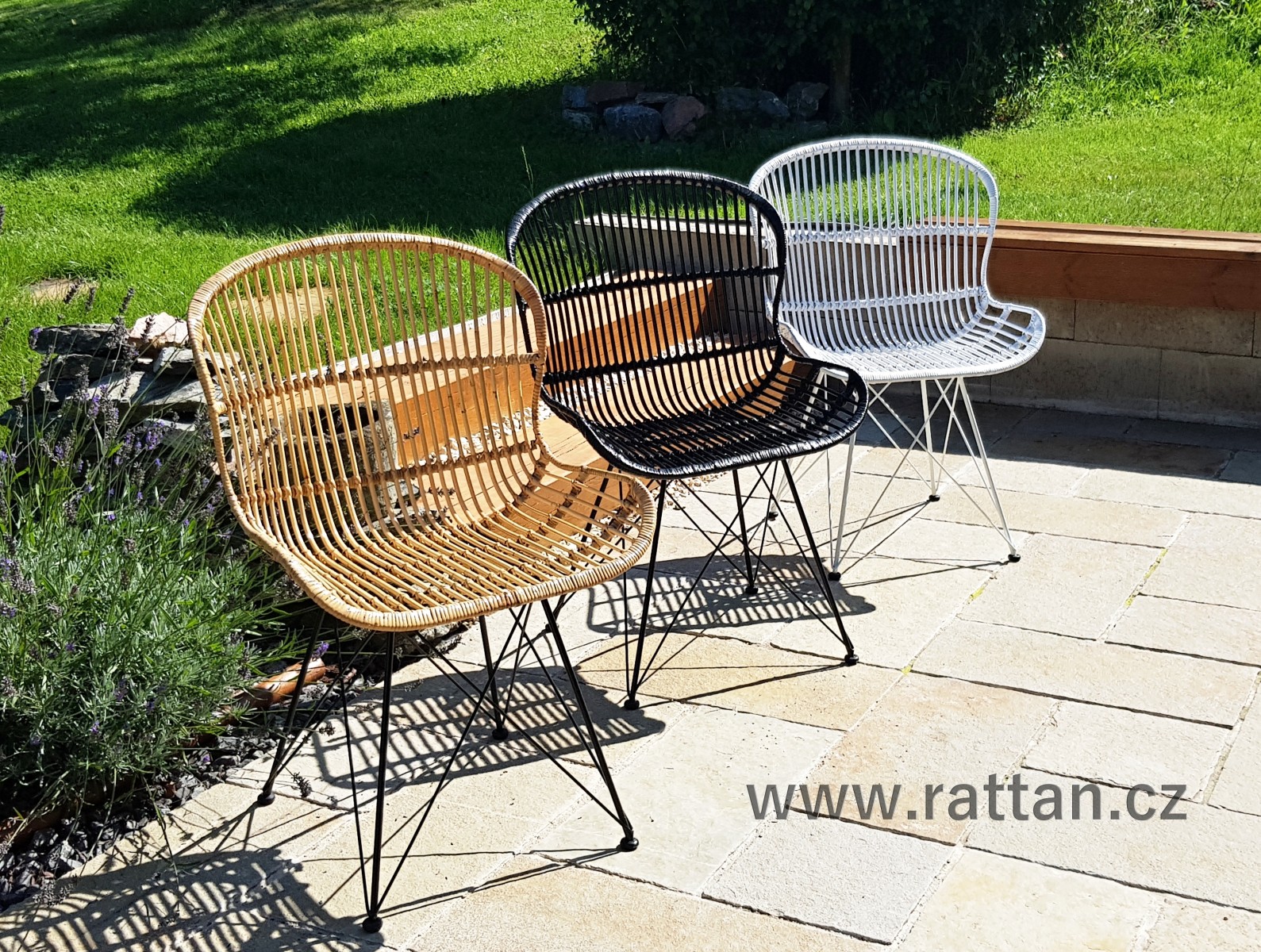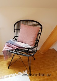 Podnož židle je kovová černé barvy. Samotné křesílko je vyrobeno z ratanových proutků, nabarvených černou barvou.