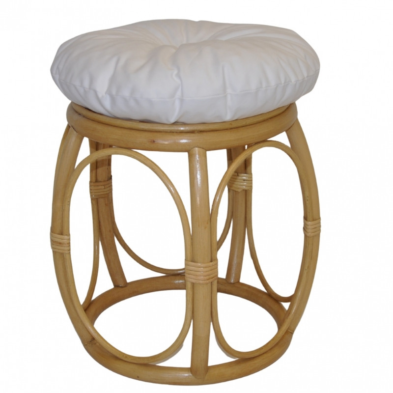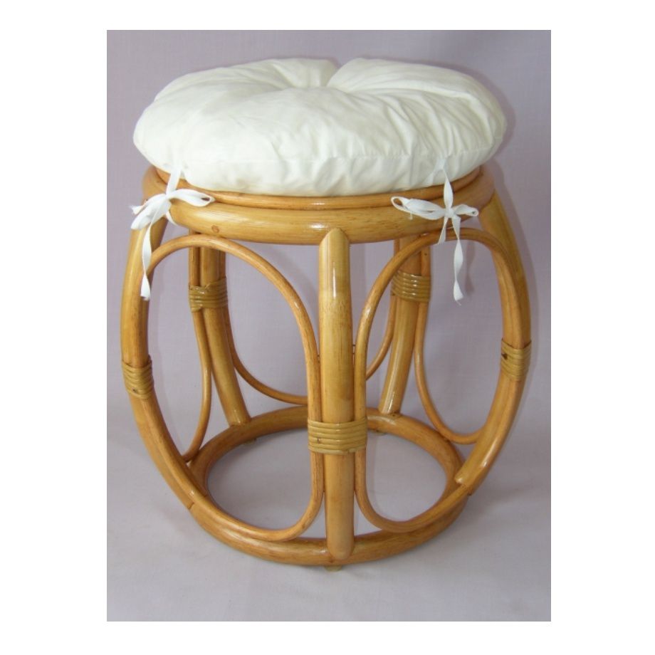 Ratanová taburetka ŠIROKÁ medová polstr bílý