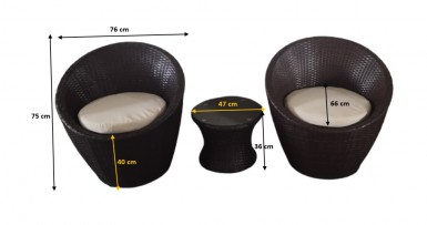 Souprava je tvořena konstrukcí, která je ocelová a výpletem ze syntetického ratanu v tmavě hnědém žíhaném odstínu viz vzorek.