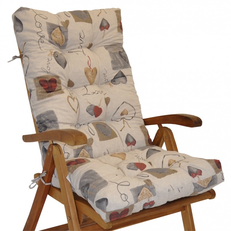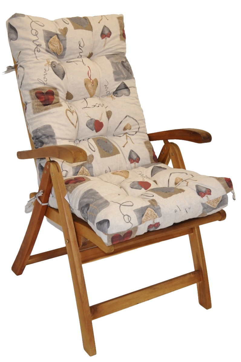 Polstr na TEAKOVÉ křeslo vysoké látka motiv srdce LOVE