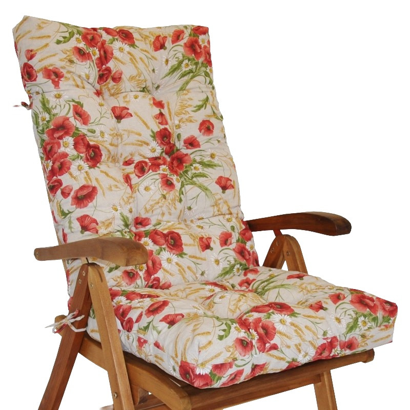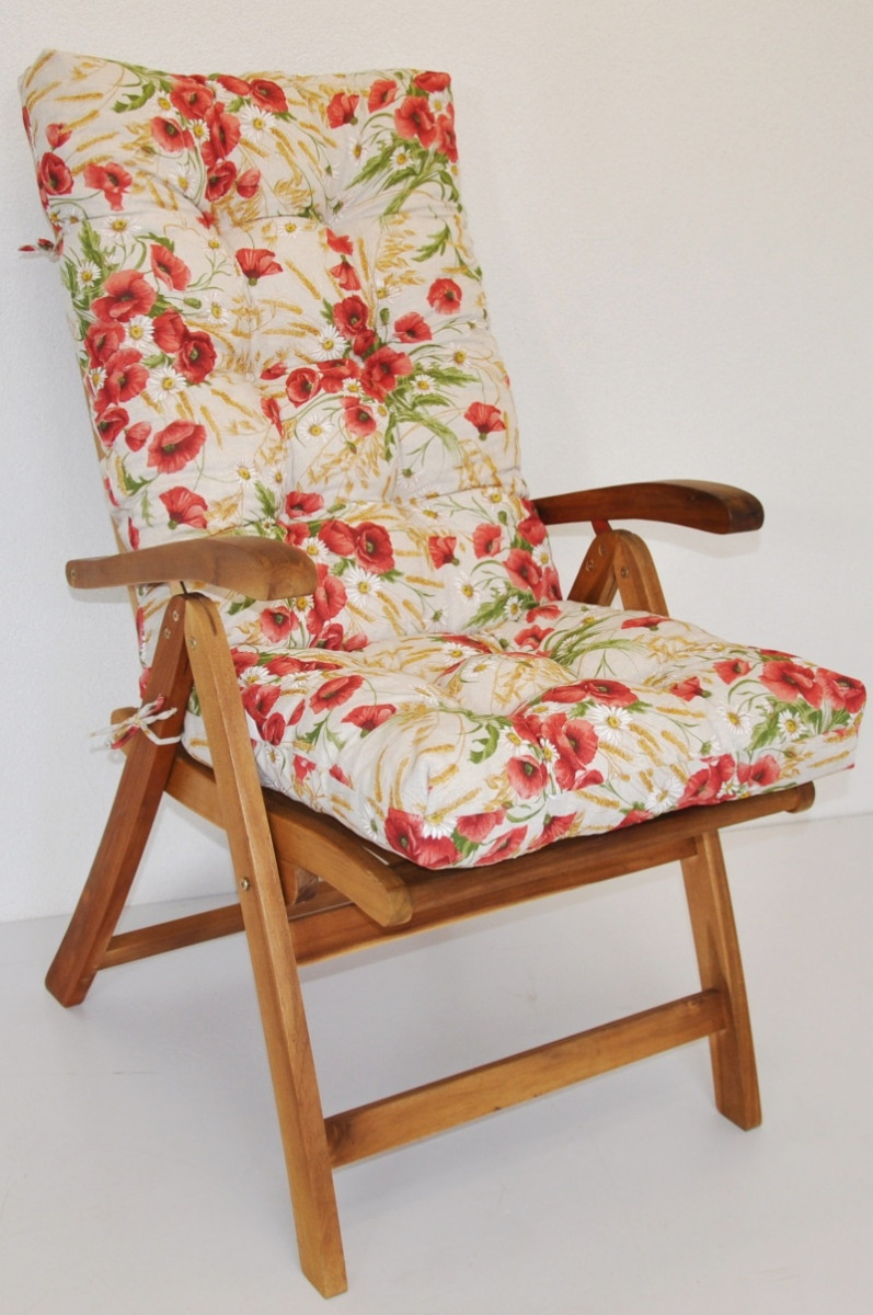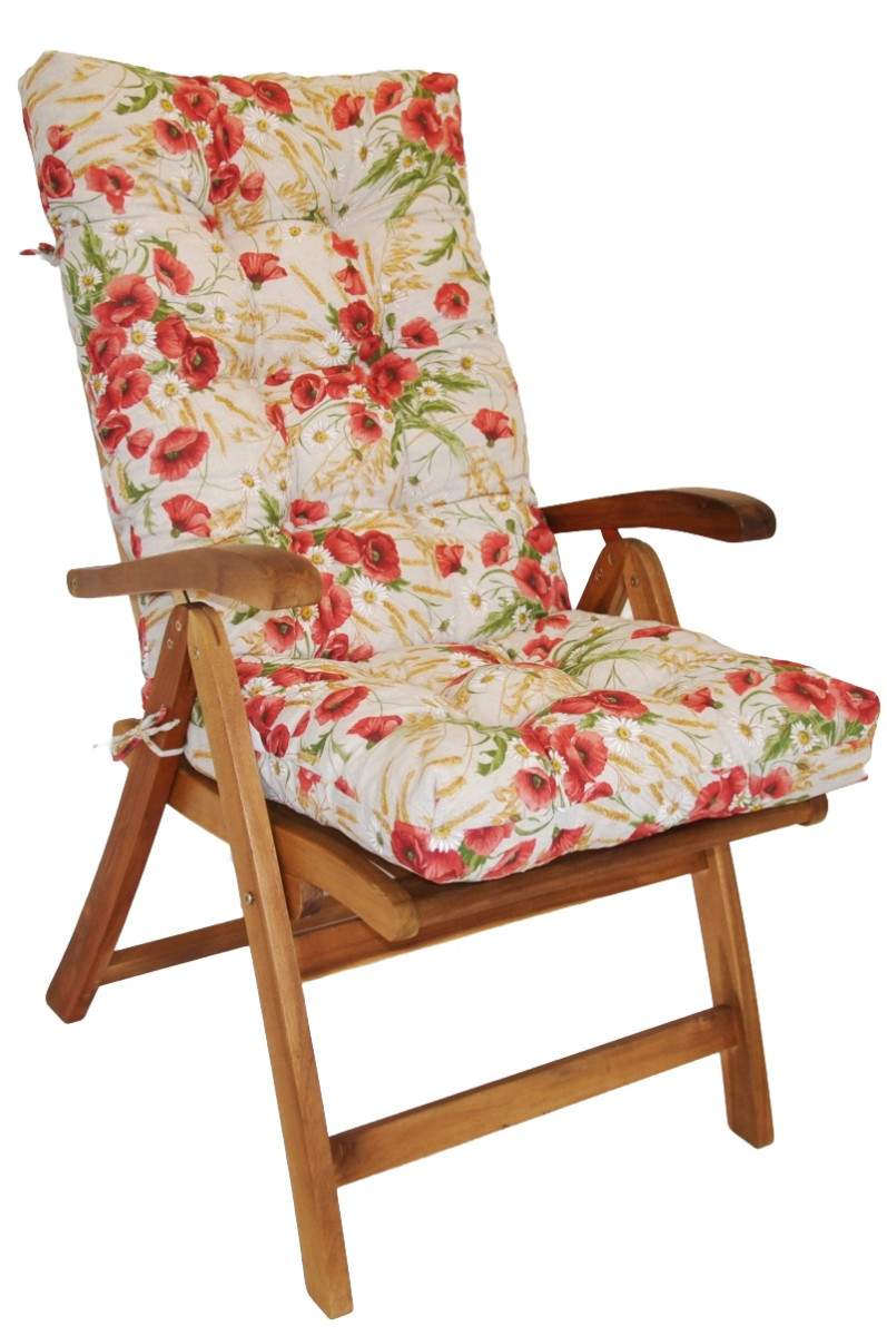 Polstr na TEAKOVÉ křeslo vysoké látka motiv vlčí mák