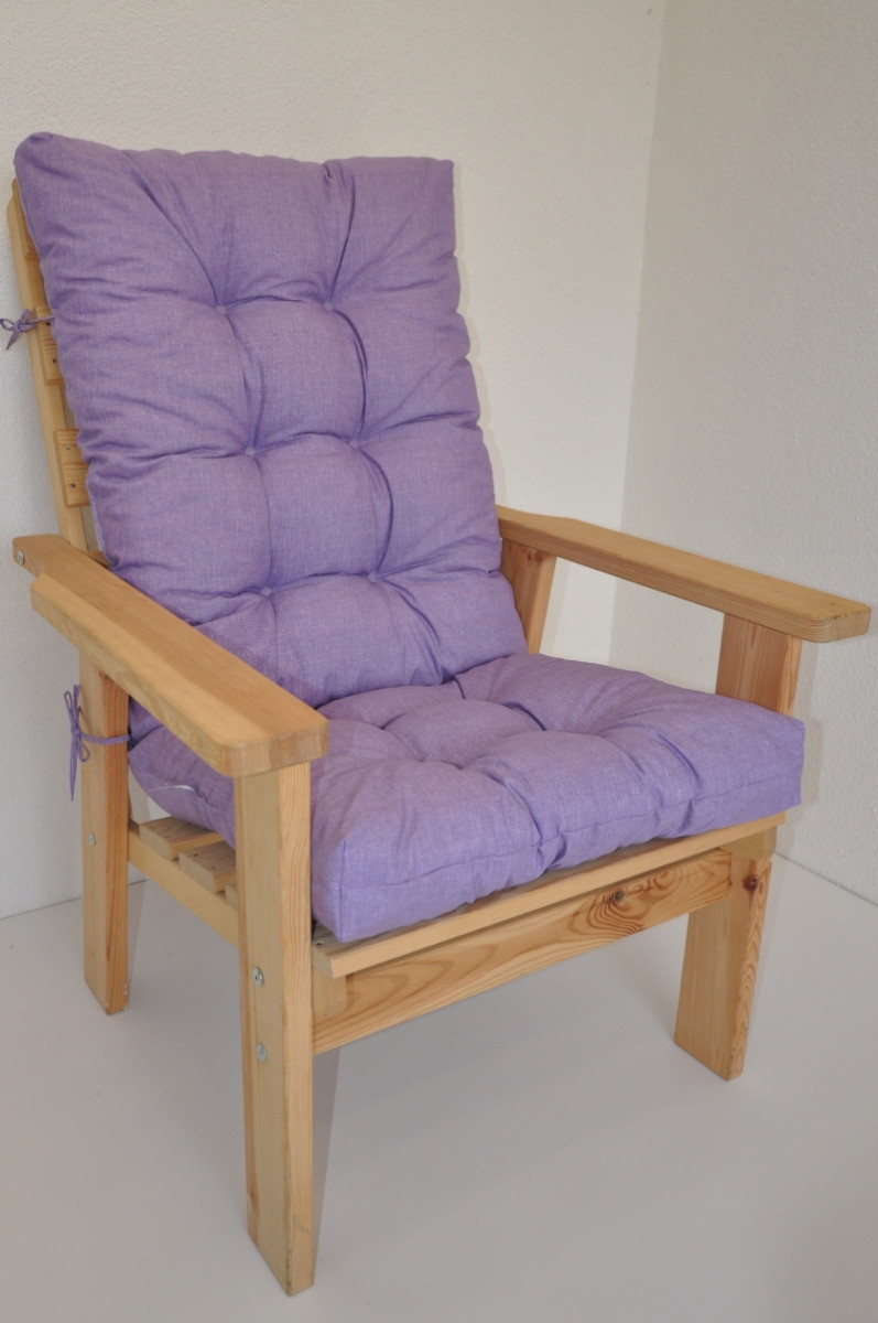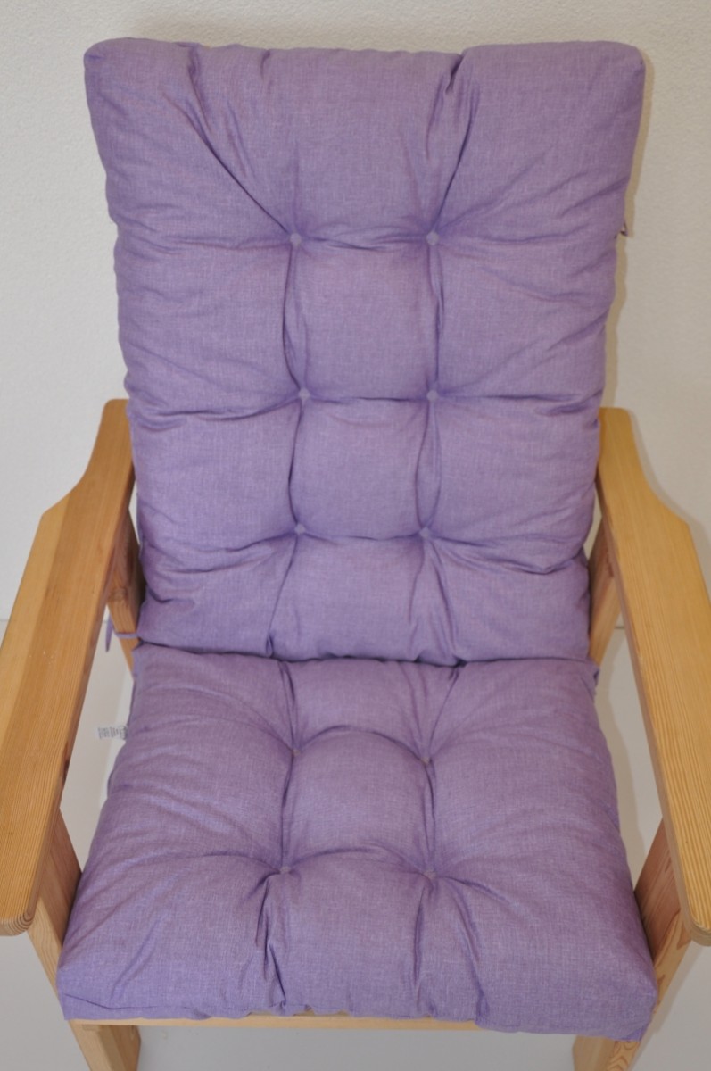 Polstr na DŘEVĚNÉ křeslo vysoké látka fialový melír