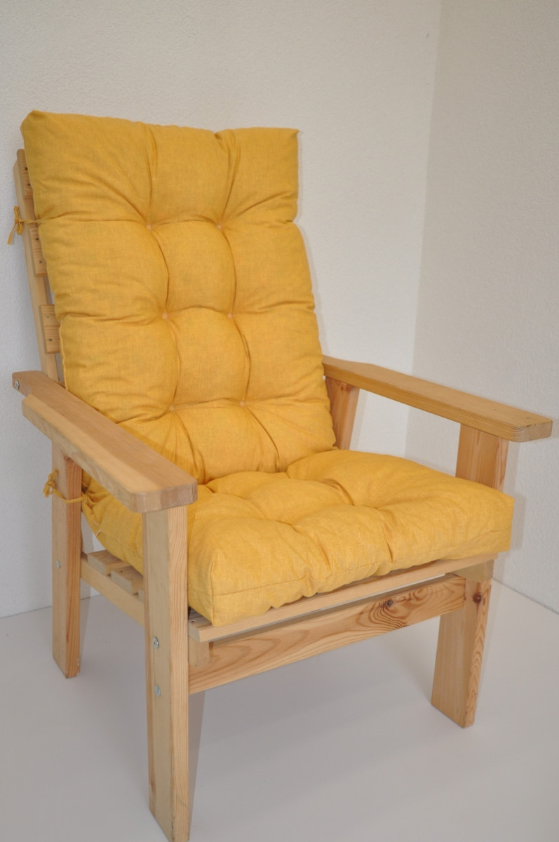 Polstr na DŘEVĚNÉ křeslo vysoké látka žlutý melír